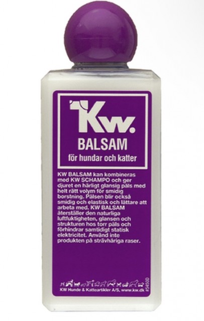 KW Balsam brukes i kombinasjon med KW Sjampo og gir en blank pels med passende fylde, som er lett å bearbeide.
